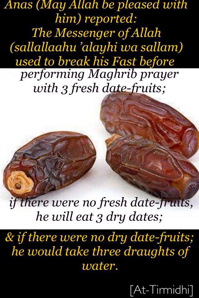 Then the adab of eating when breaking fast is to eat dates and drink some water. If there are no dates, eat something sweet to increase our sugar level after a day of fasting inshaAllah.
