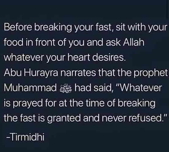 Alhamdulillah. We have fasted for a day already. Its time to break our fast. However we dont just begin to eat to cease our hunger but about 5-10 minutes before the call of adhan informing us the time for breaking our fast, this is the best time for us to make our supplications: