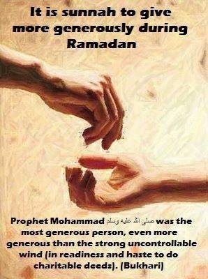 Ibn ‘Abbas, may Allah be pleased with him, had said that, “The beloved Prophet Muhammad (saw) was the most generous of people.” Furthermore, Al-Bayhaqi reported that ‘Ayisha, may Allah be pleased with her, had said, “When Ramadhan would start, the Prophet ( saw) would release all prisoners of war and fulfill the need of every person who would ask him for something.” ( Hadits Muthfaqun alaihi)