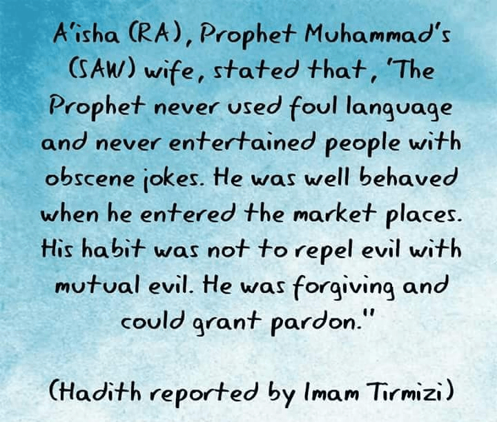 It was reported that our beloved prophet Muhammad (saw) never used bad language with his peers or family. He was always very kind and soft hearted and he would never use evil against evil no matter what the situation may be. Subhana Allah. How beautiful is his adab and akhlaq was.