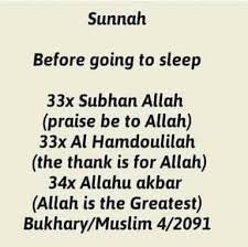 Our beloved nabi Muhammad (saw) used to recite Thasbeeh, Thahmeed and Thakbeer before sleep.