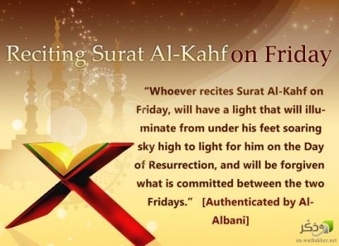 Whoever reads Surah al Kahf on the day of Jumu’a will have a light that will shine from him from one Friday to the next. (al-Jaami’)